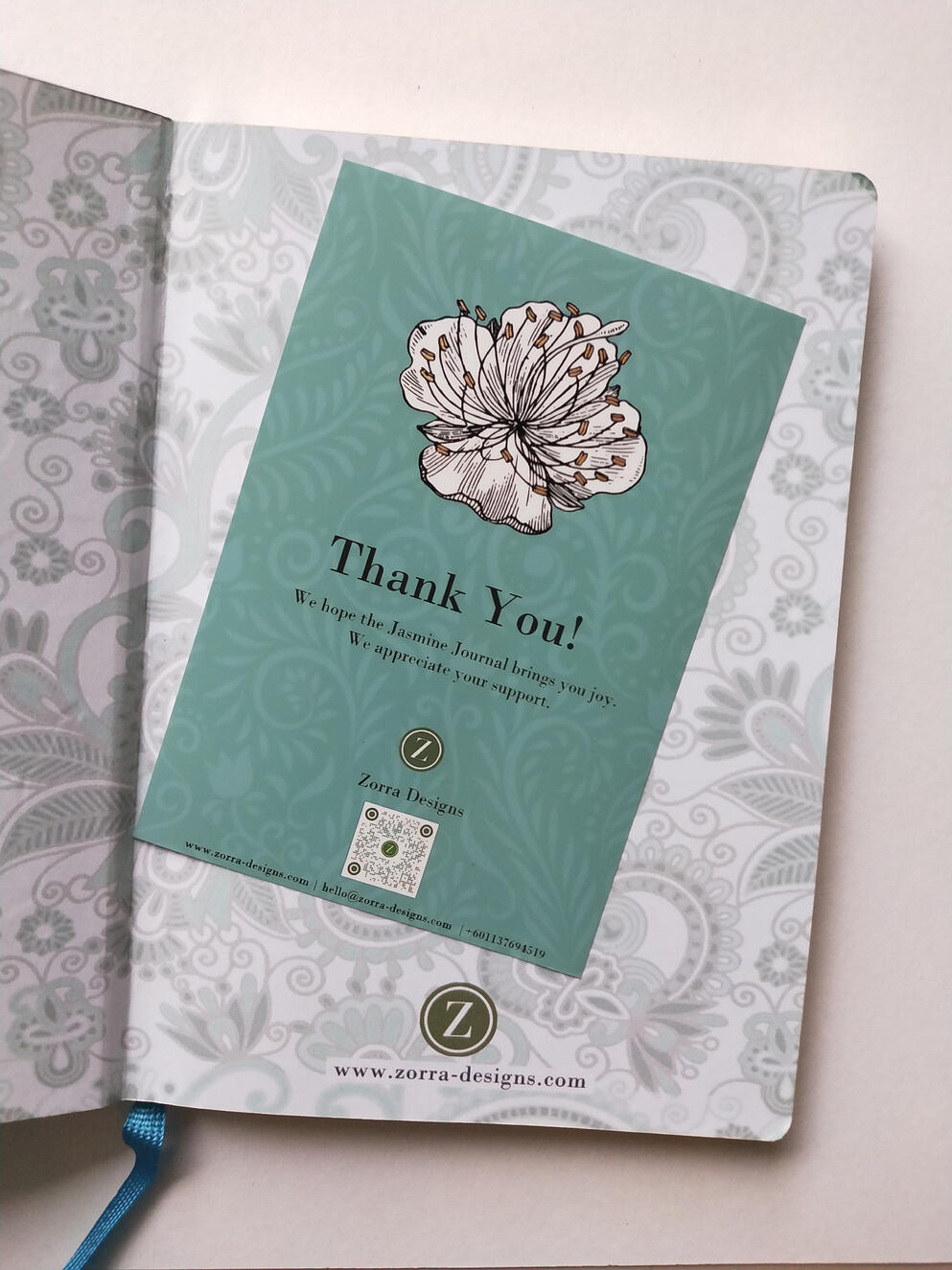 Dr Haliza has been journaling since she was 12. She suggested to begin by creating beautiful journals. So they both worked on an original cover design inspired by the Jasmine flower.